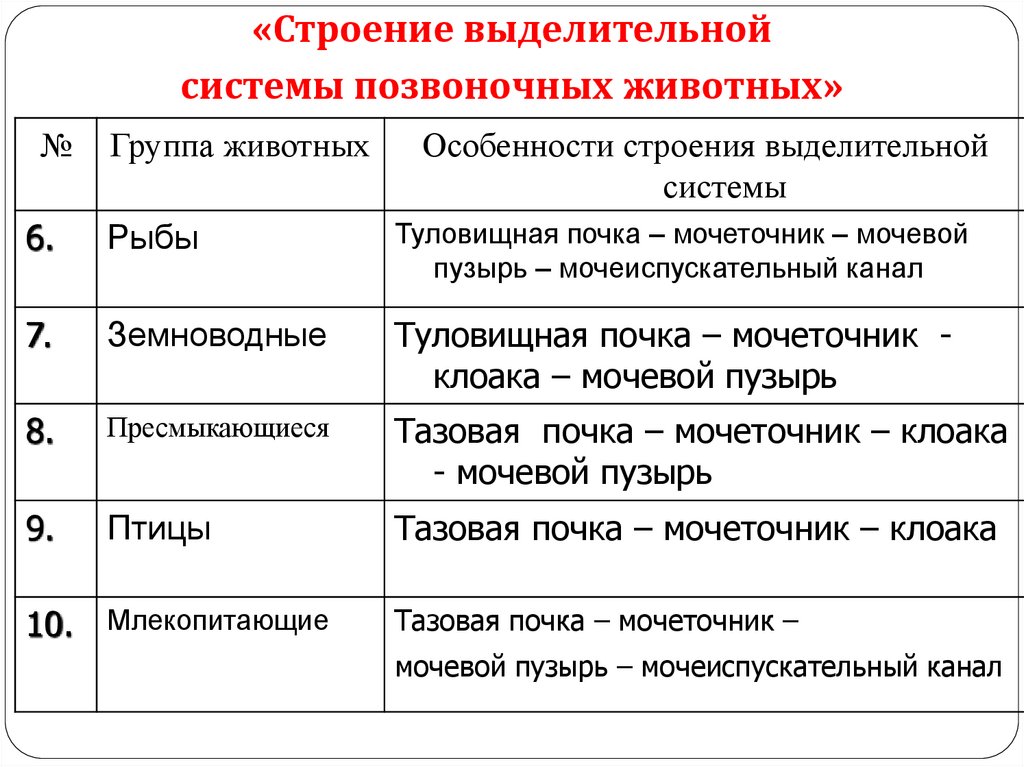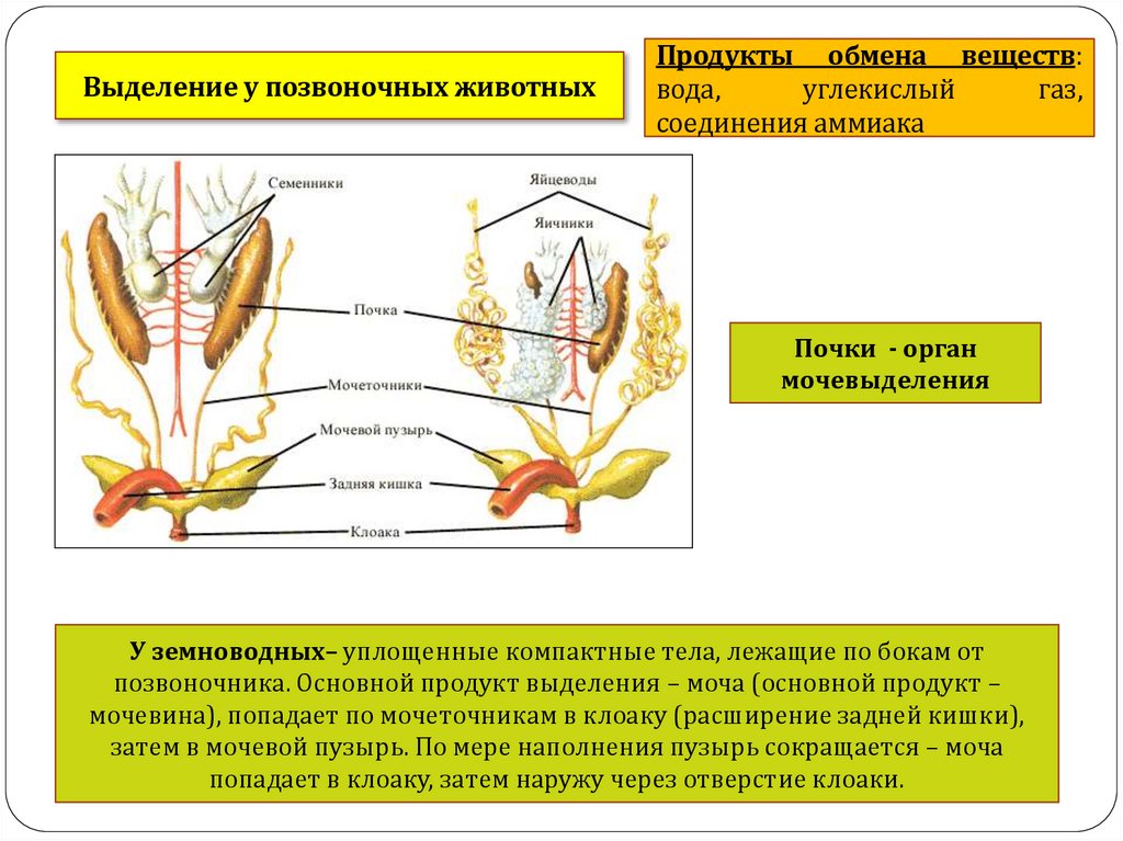 позвоночника. Основной продукт выделения – моча (основной продукт –