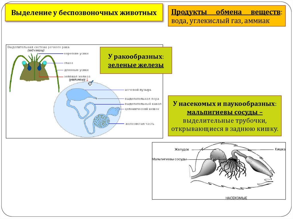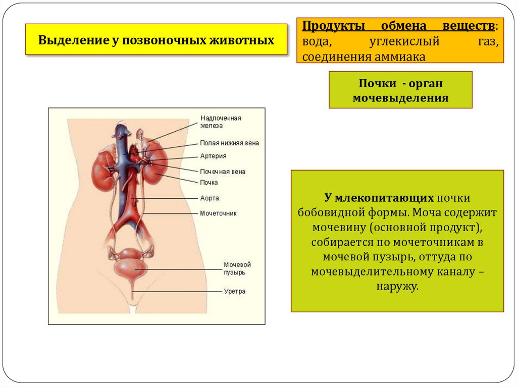 Выделение у позвоночных животныхПродукты обмена веществ: