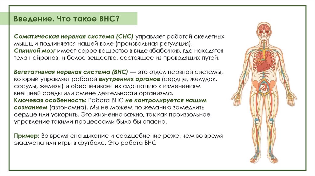 Введение. Что такое ВНС?Соматическая нервная система (СНС) управляет работой скелетных