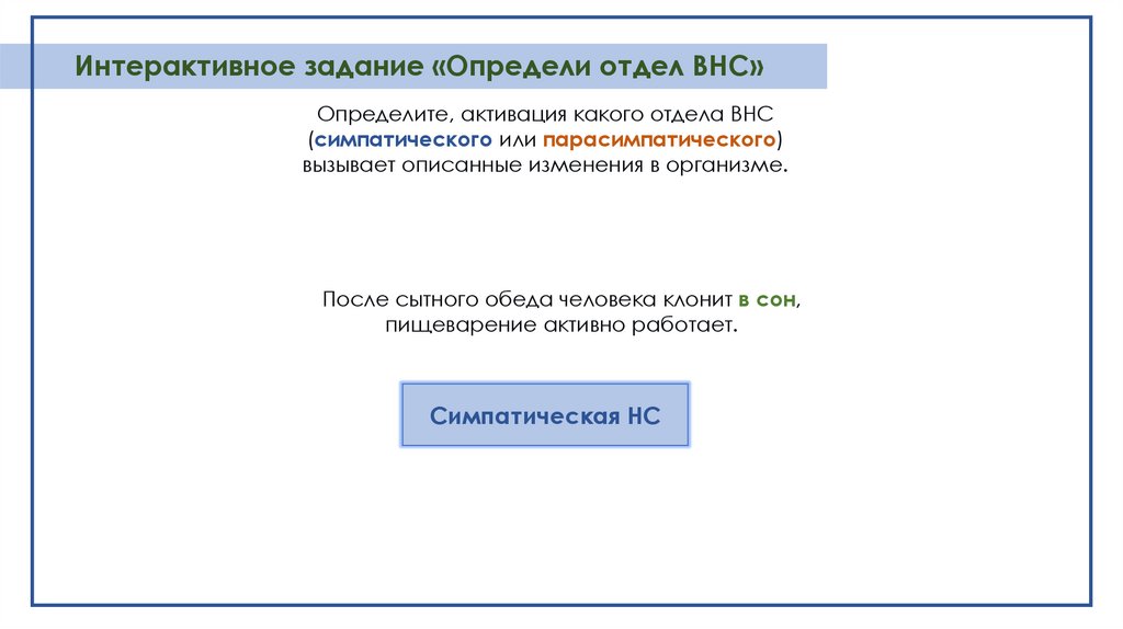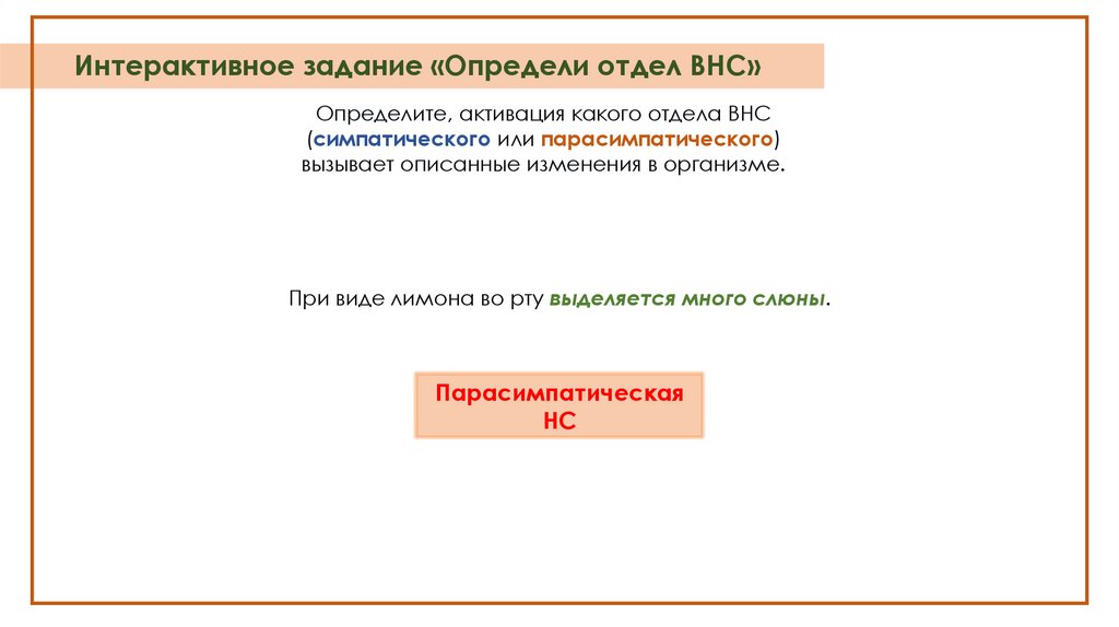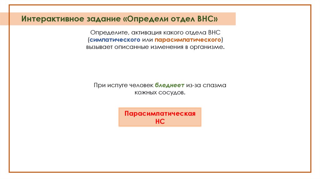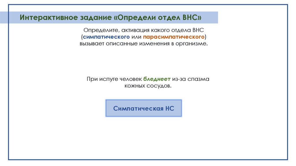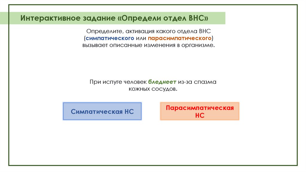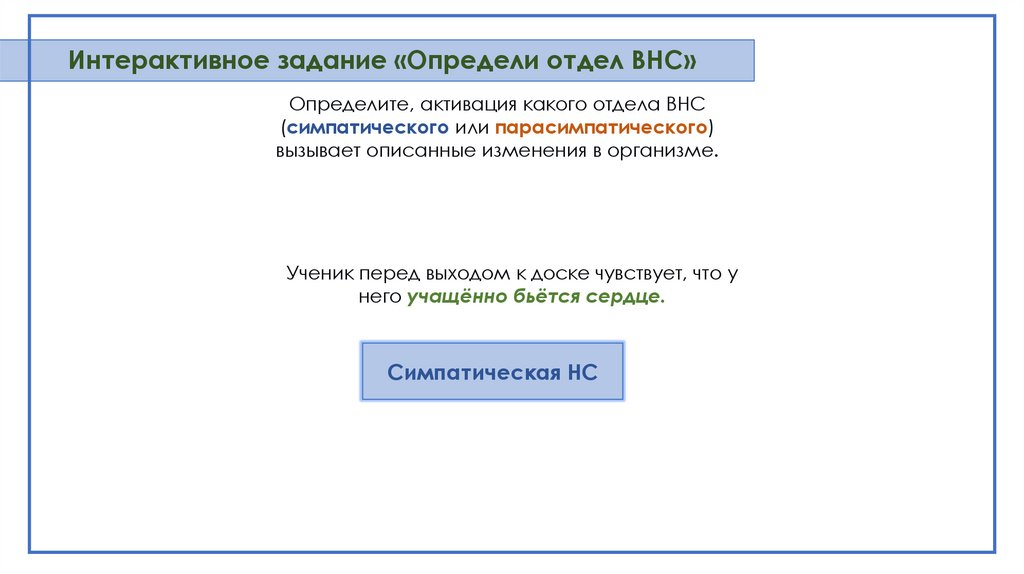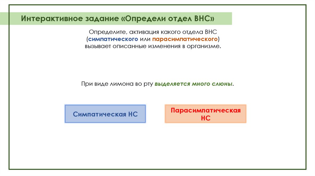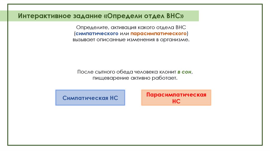 Интерактивное задание «Определи отдел ВНС»Определите, активация какого отдела ВНС