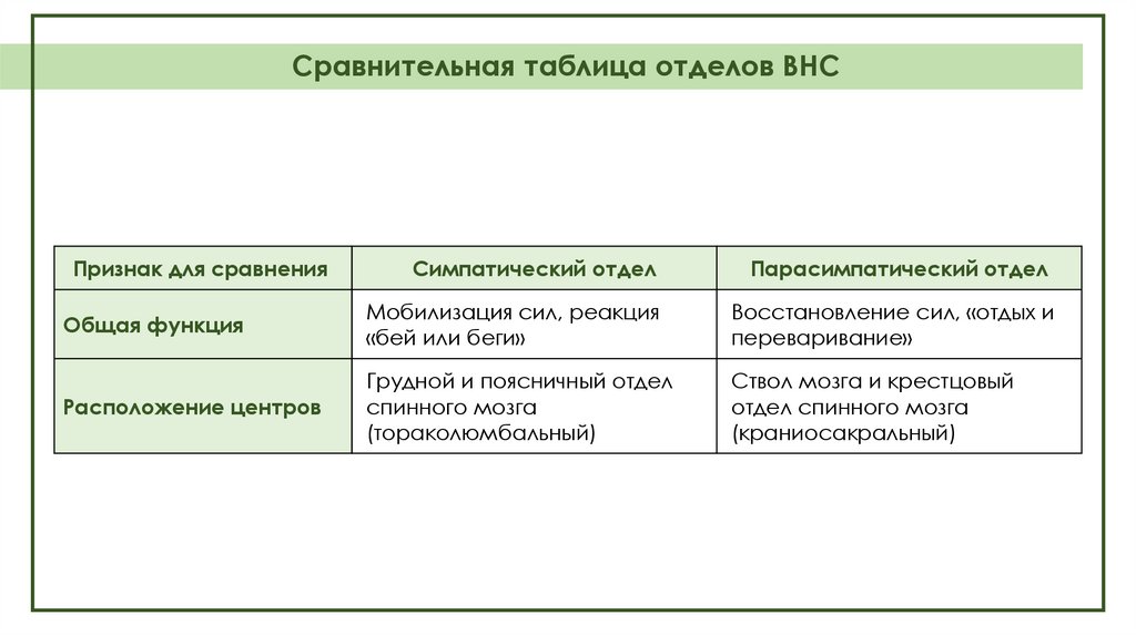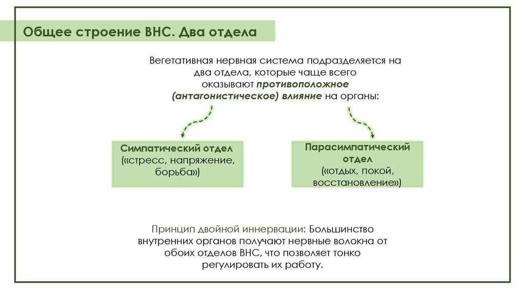 Общее строение ВНС. Два отделаВегетативная нервная система подразделяется на