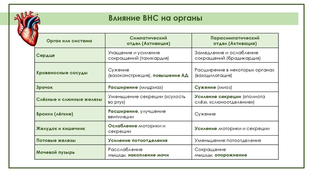 Влияние ВНС на органыСимпатический