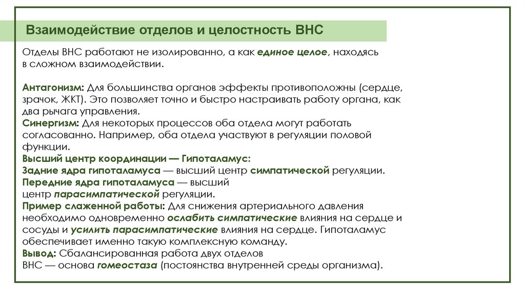 Взаимодействие отделов и целостность ВНСОтделы ВНС работают не изолированно, а как единое целое, находясь