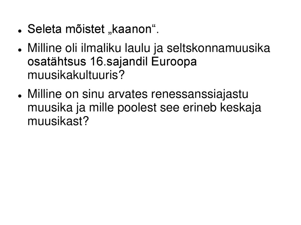 Seleta mõistet „kaanon“.Milline oli ilmaliku laulu ja seltskonnamuusika