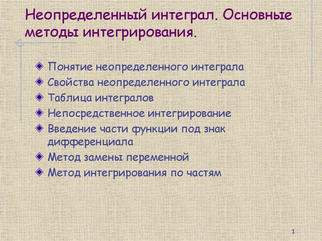 1. Неопределенный интеграл. Основные методы интегрирования.
