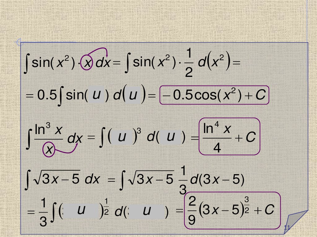 - интегралы, приводящиеся к исходному. За u можно принимать