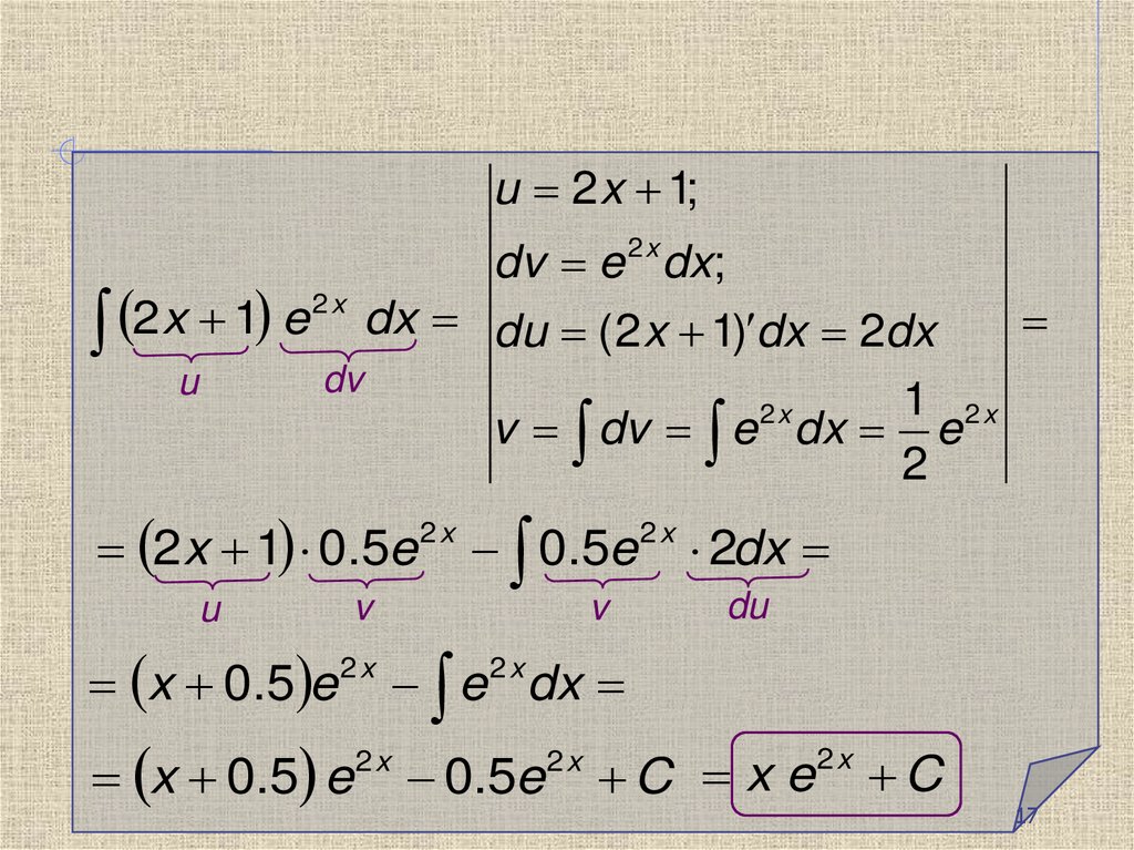 где: P(x) – многочлен. Удобно положить u = P(x), dv –