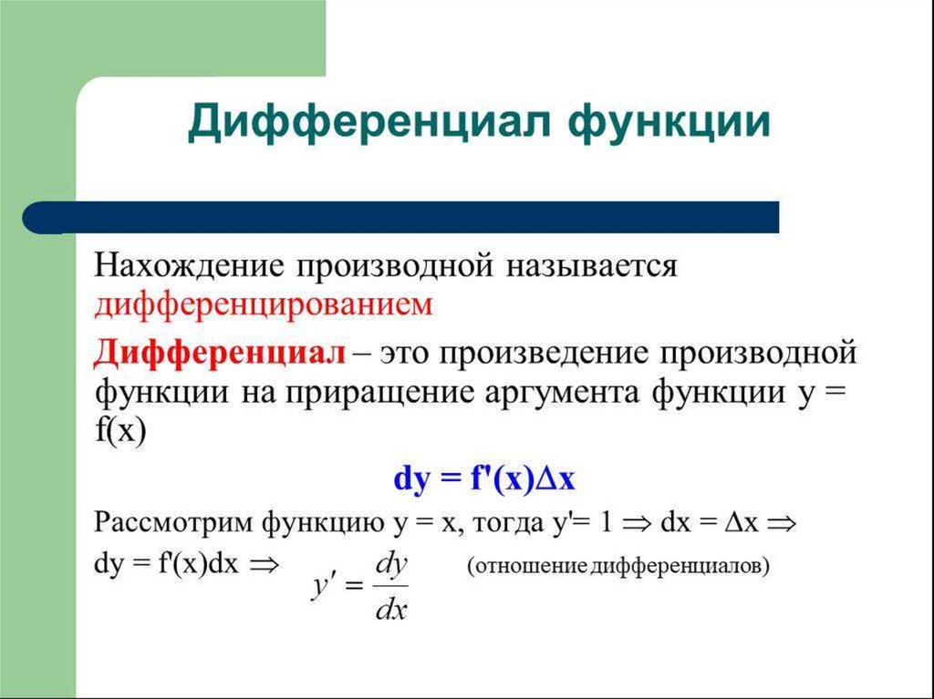 В дифференциальном исчислении решается задача: по даннойфункции f(x) найти ее производную.