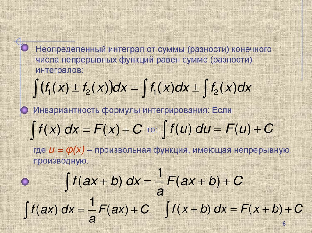 Понятие неопределенного интегралаСвойства неопределенного интеграла