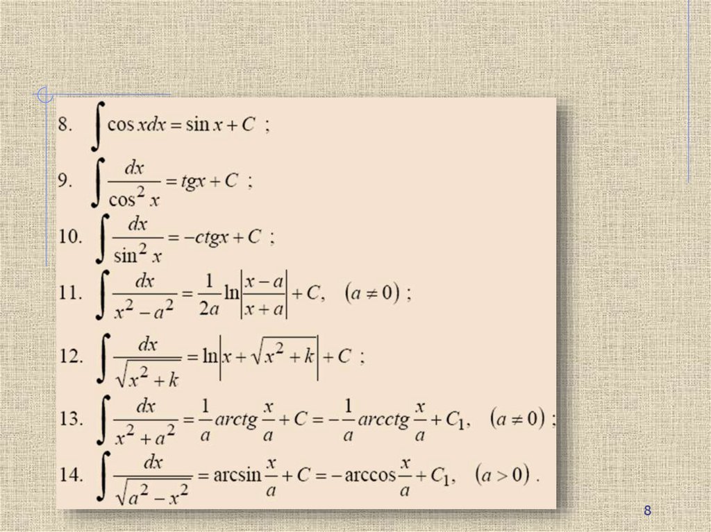 f ( x ) dx F ( x ) C то: f (u ) du F (u ) C