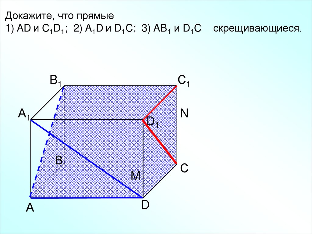 Докажите, что прямые1) AD и C1D1; 2) A1D и D1C; 3) AB1 и D1C