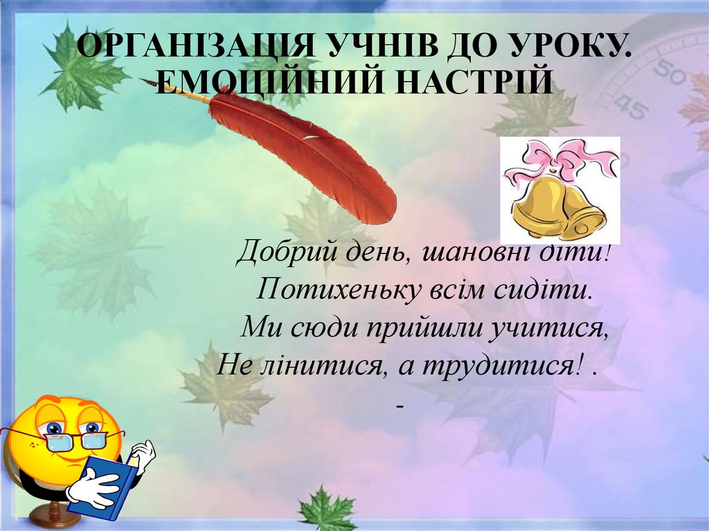 ОРГАНІЗАЦІЯ УЧНІВ ДО УРОКУ.ЕМОЦІЙНИЙ НАСТРІЙ