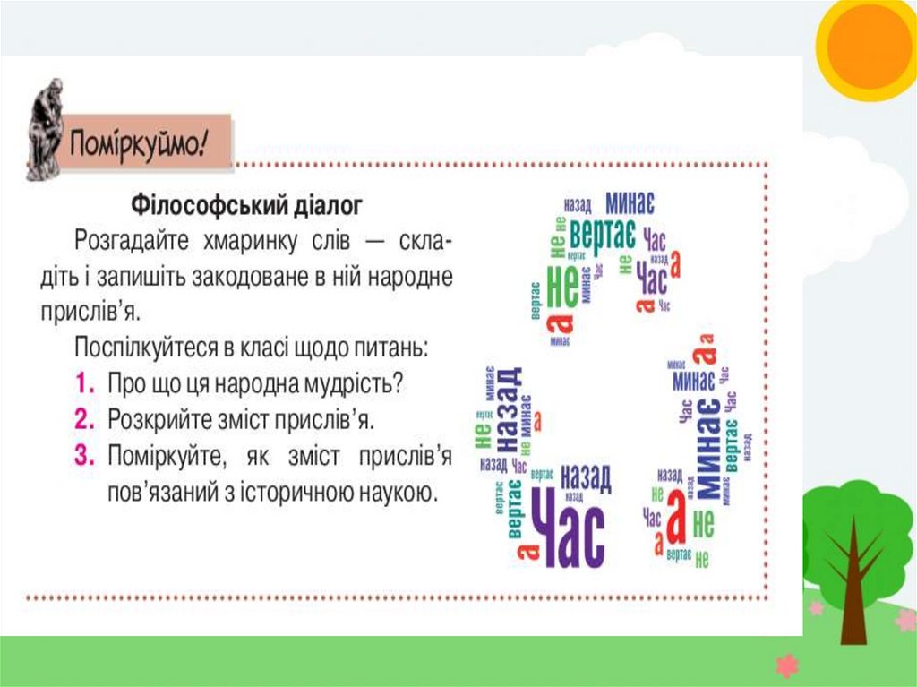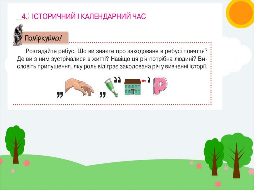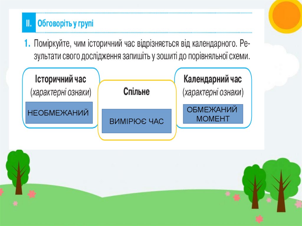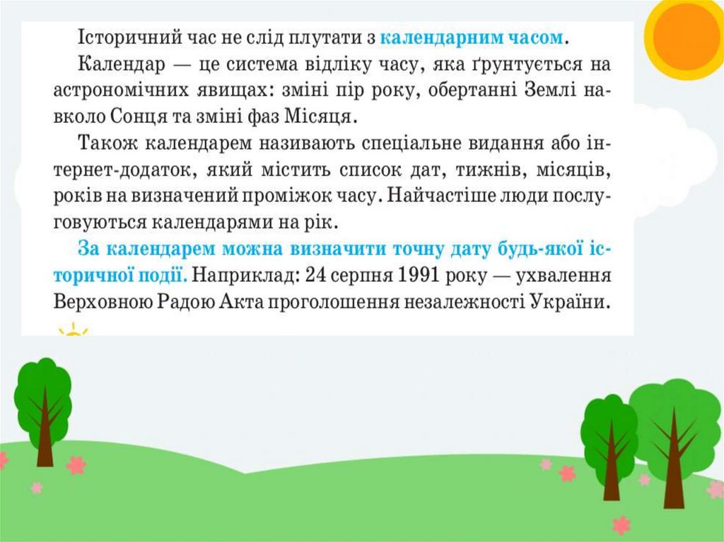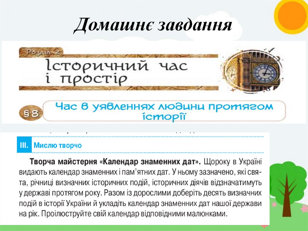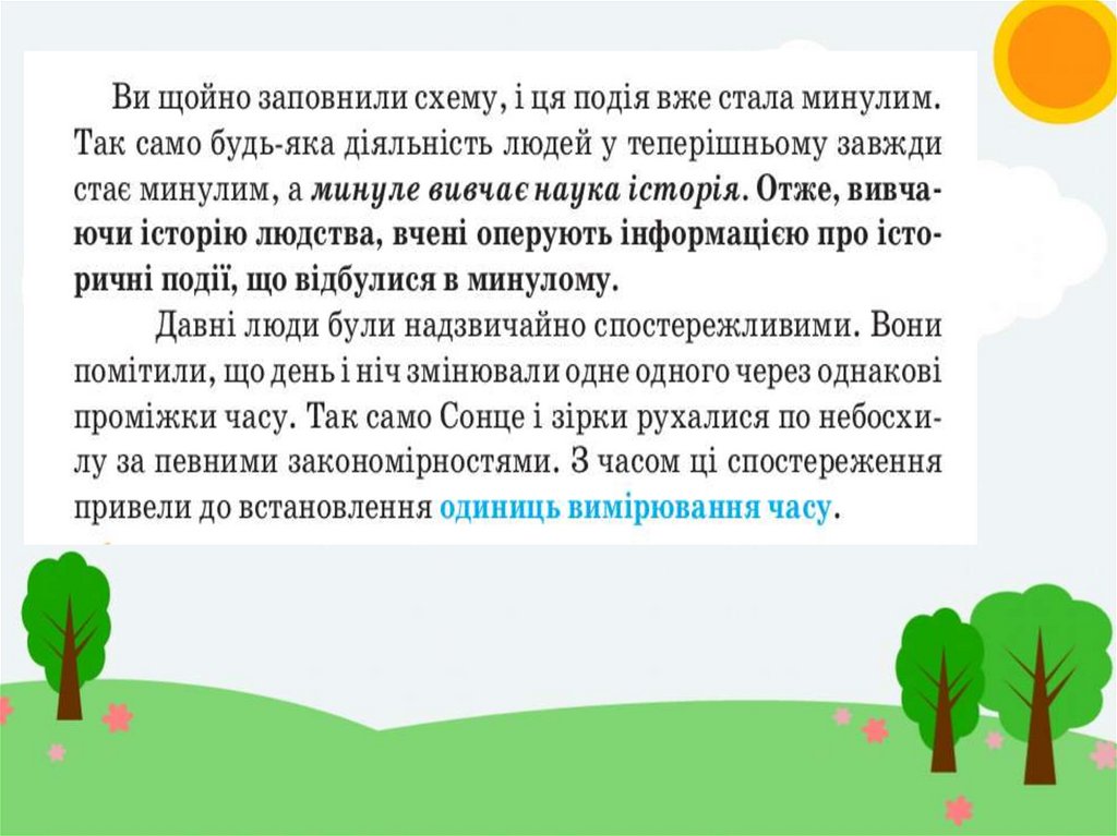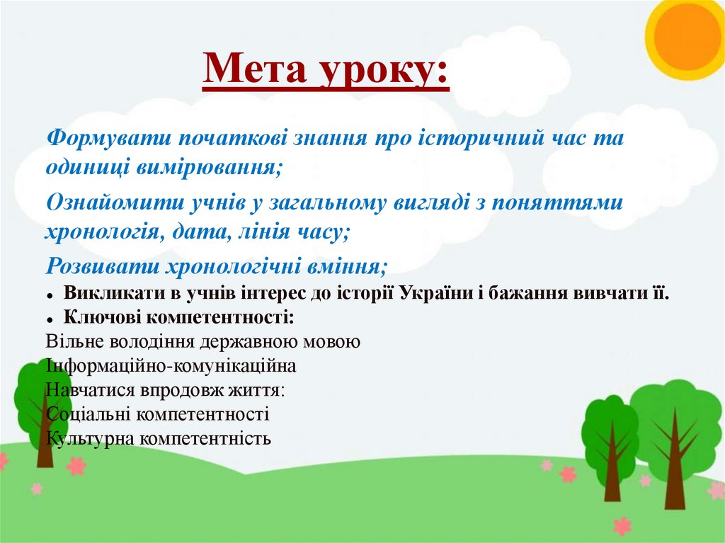 Мета уроку:Формувати початкові знання про історичний час та