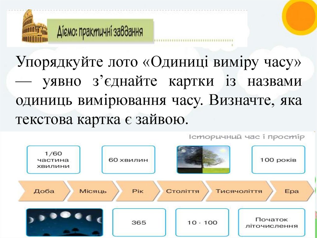 Упорядкуйте лото «Одиниці виміру часу»— уявно з’єднайте картки із назвами