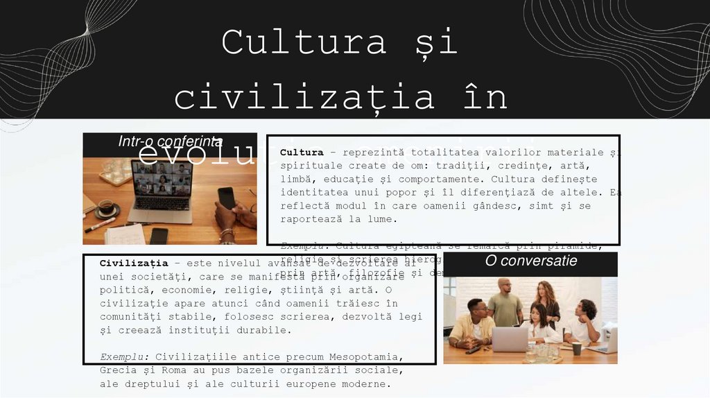 Exemplu: Cultura egipteană se remarcă prin piramide,