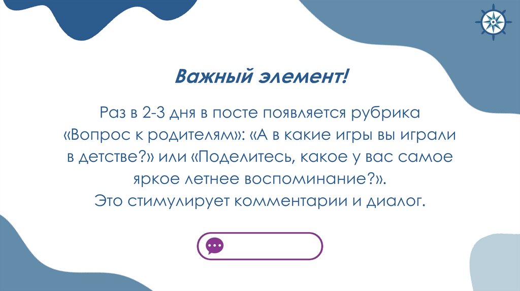 Важный элемент!Раз в 2-3 дня в посте появляется рубрика