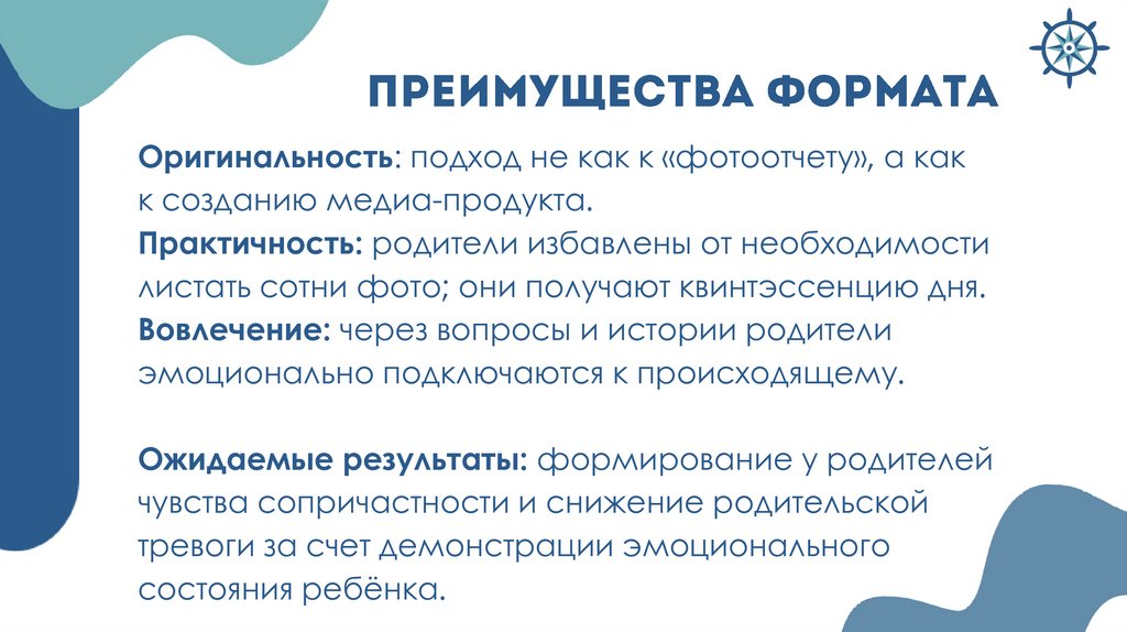 и развернутой обратной связи от детей и родителей.