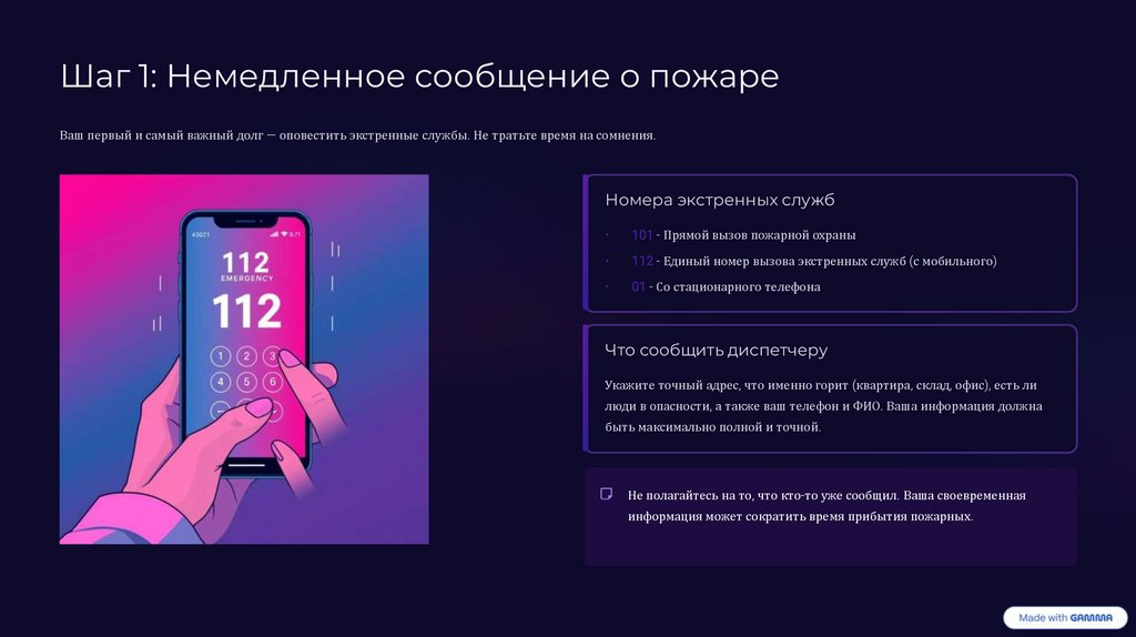 Шаг 1: Немедленное сообщение о пожареВаш первый и самый важный долг — оповестить экстренные службы. Не тратьте время на сомнения.