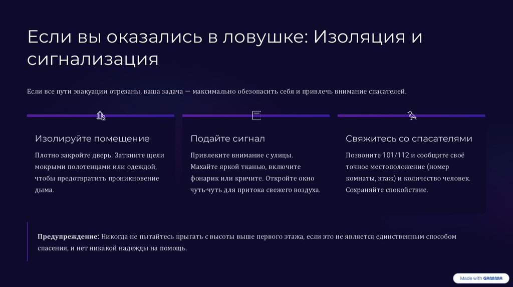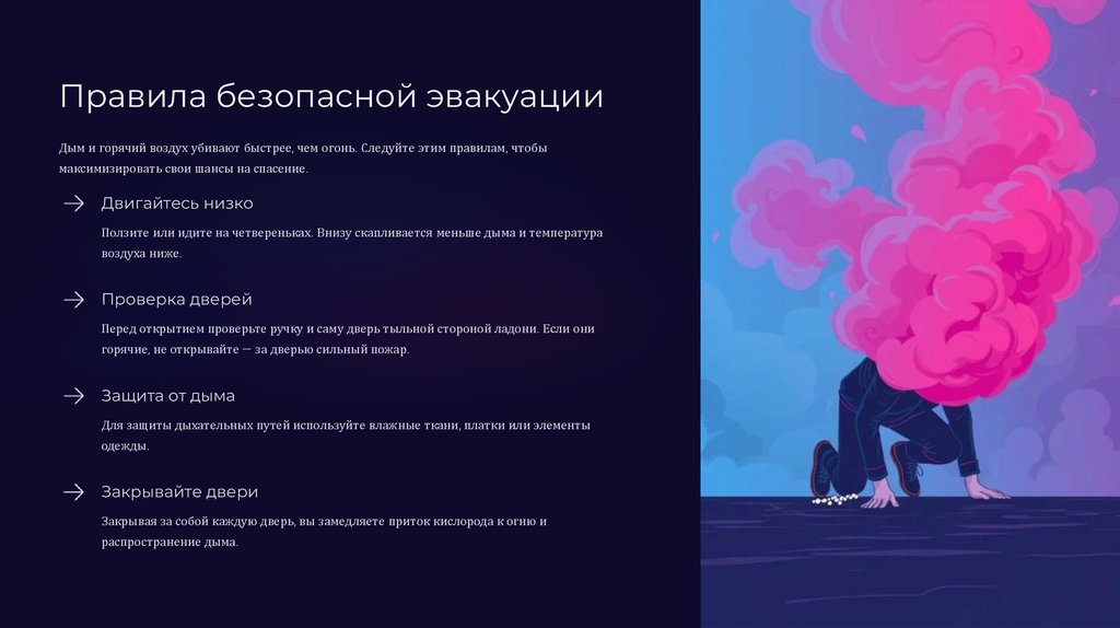 Правила безопасной эвакуацииДым и горячий воздух убивают быстрее, чем огонь. Следуйте этим правилам, чтобы