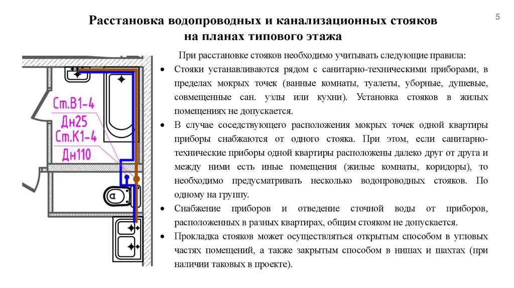 При расстановке стояков необходимо учитывать следующие правила: