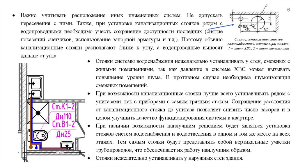 6Важно учитывать расположение иных инженерных систем. Не допускать