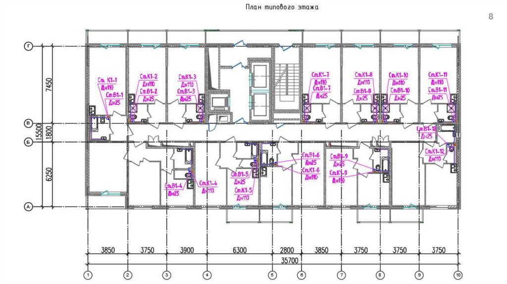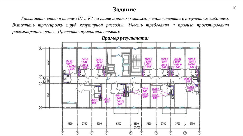 рассмотренные ранее. Присвоить нумерацию стоякам