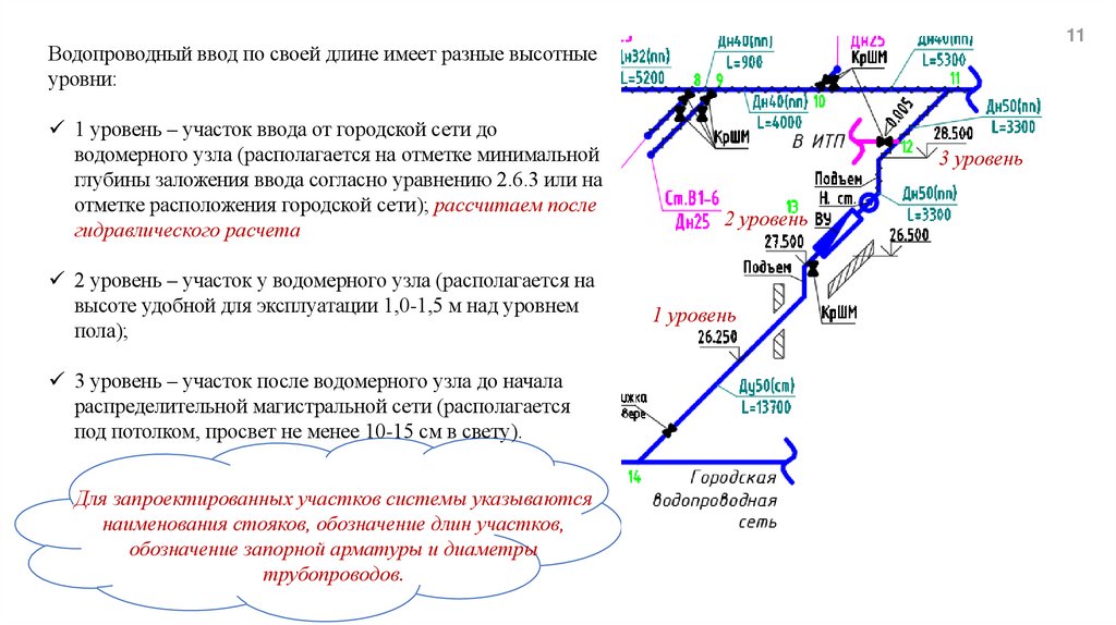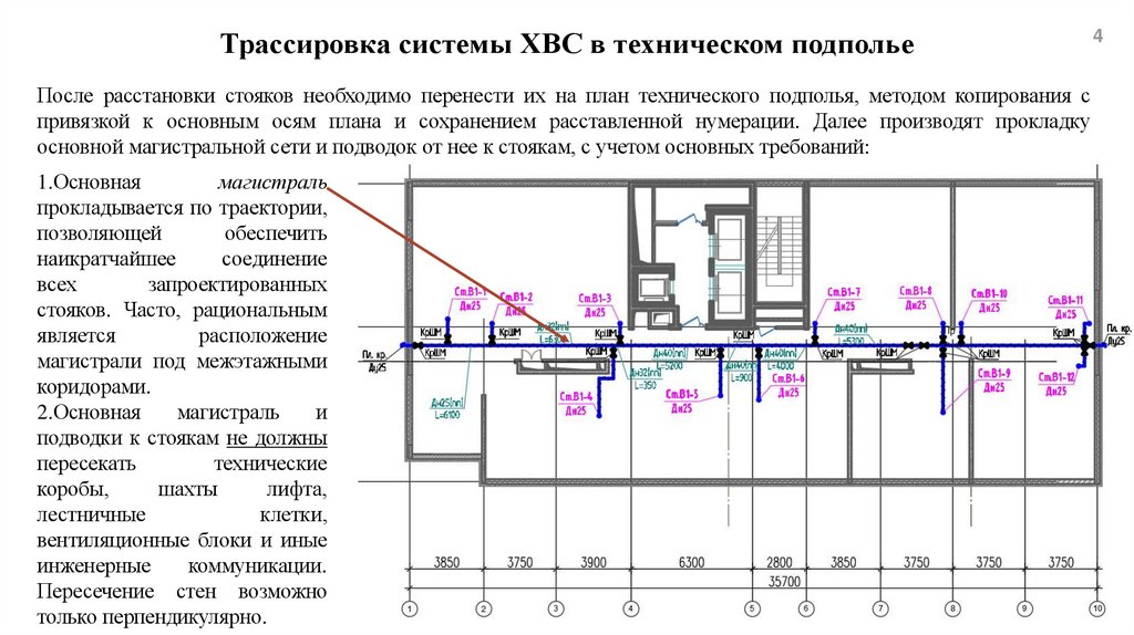 основной магистральной сети и подводок от нее к стоякам, с учетом основных требований: