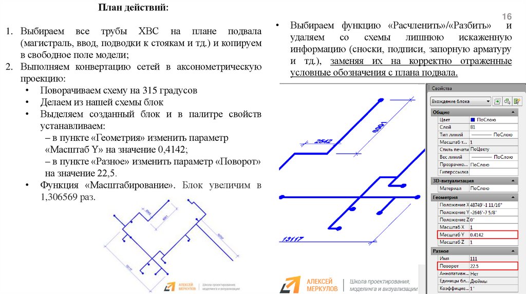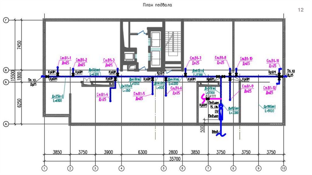 План действий:1. Выбираем все трубы ХВС на плане подвала