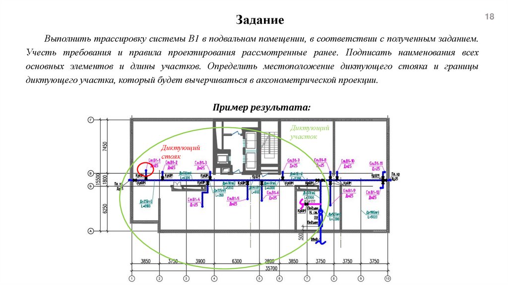 Выполнить трассировку системы В1 в подвальном помещении, в соответствии с полученным заданием.