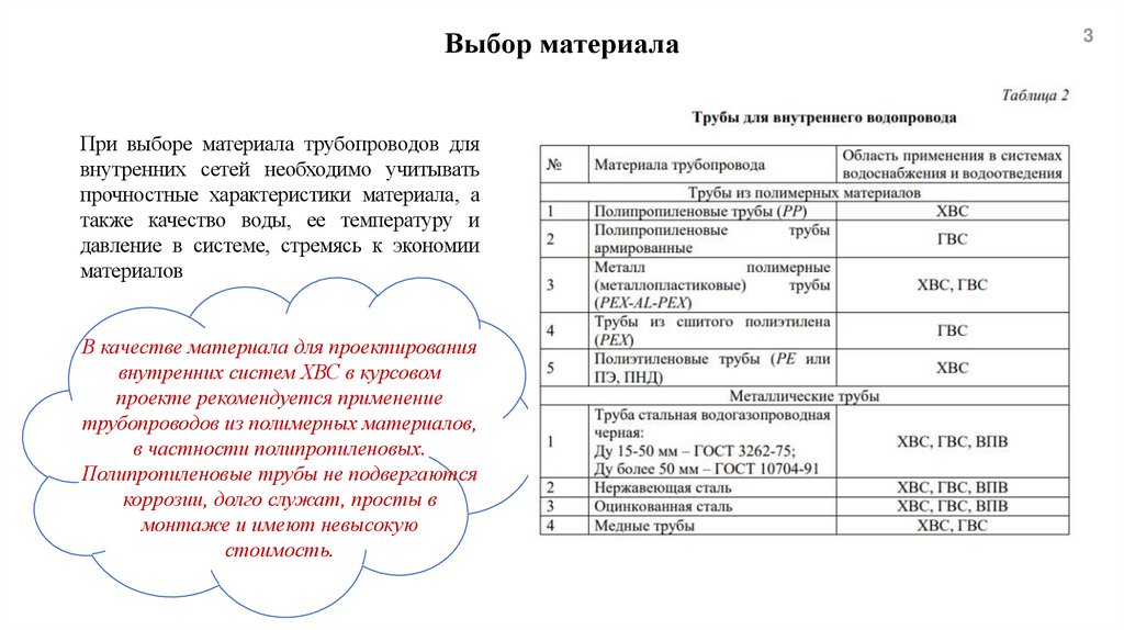 Выбор материалаПри выборе материала трубопроводов для