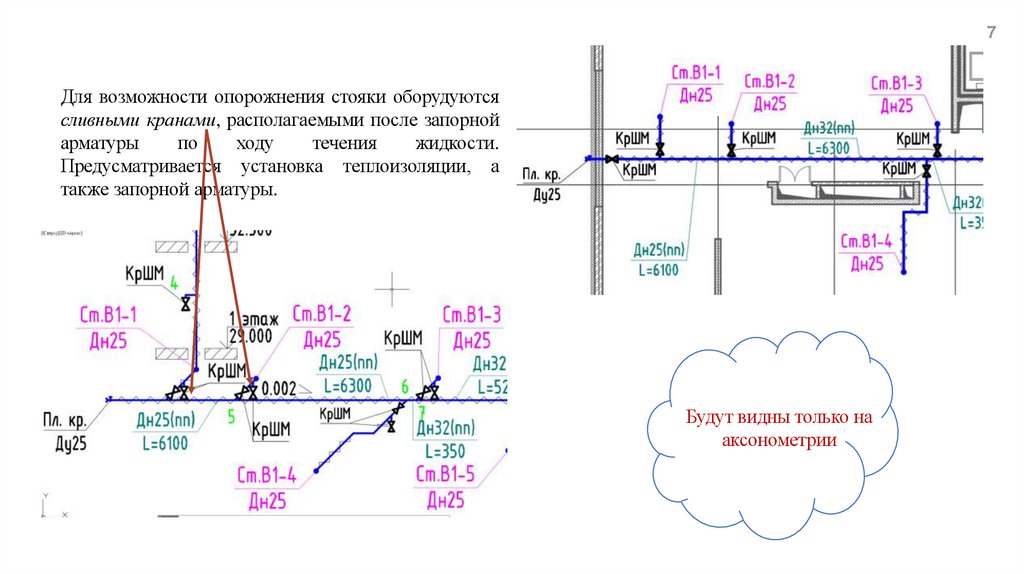 1. На аксонометрической схеме отражается участок сети от
