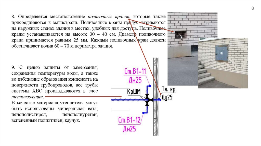 ● перед наружными поливочными кранами.