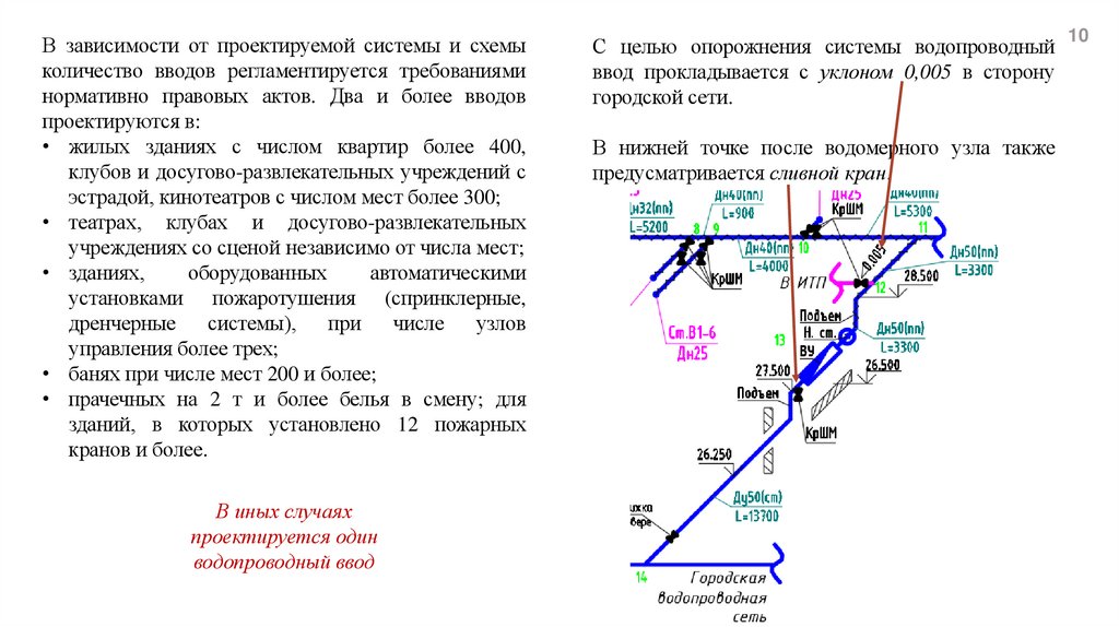 ввода в здание до диктующего водоразборного прибора.