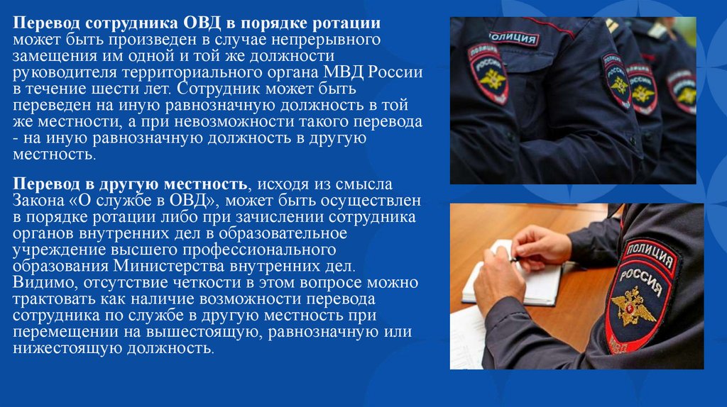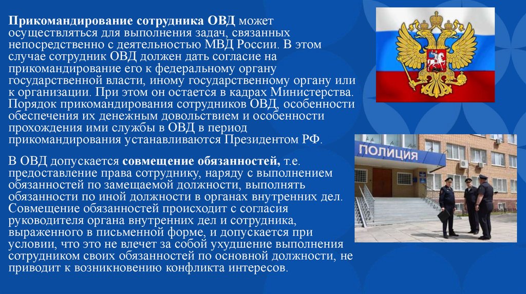 внутренних дел. Зачисление сотрудника в распоряжение органа внутренних