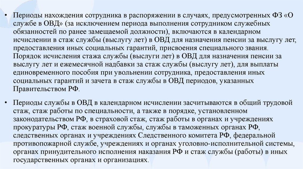 Д О П ОЛ Н И Т Е Л Ь Н Ы Е О Т П У С К А1) за стаж службы в ОВД. Такой отпуск предоставляется в календарном