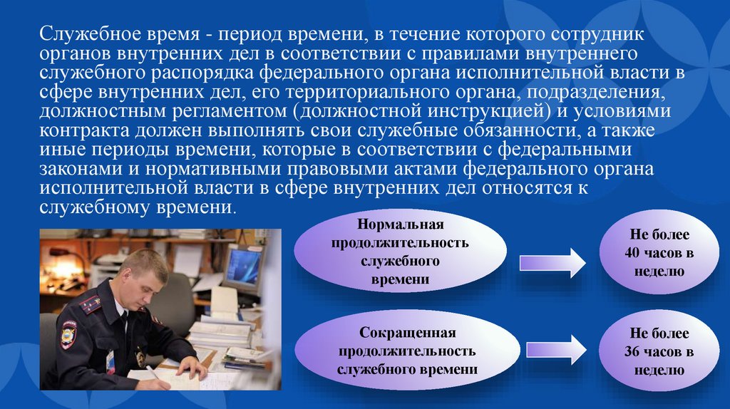 Служебное время - период времени, в течение которого сотрудникорганов внутренних дел в соответствии с правилами внутреннего