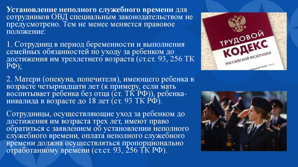 Установление неполного служебного времени длясотрудников ОВД специальным законодательством не