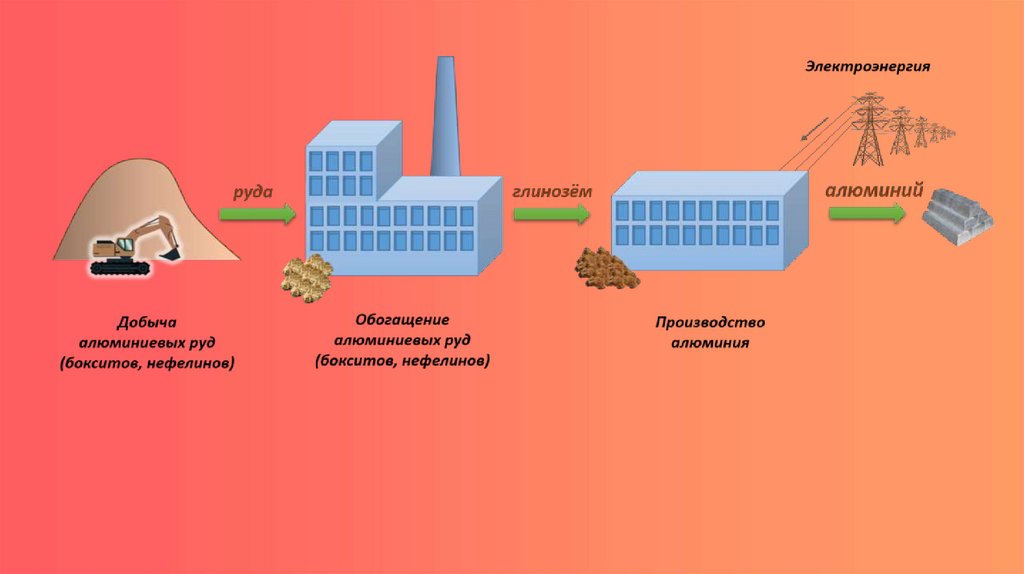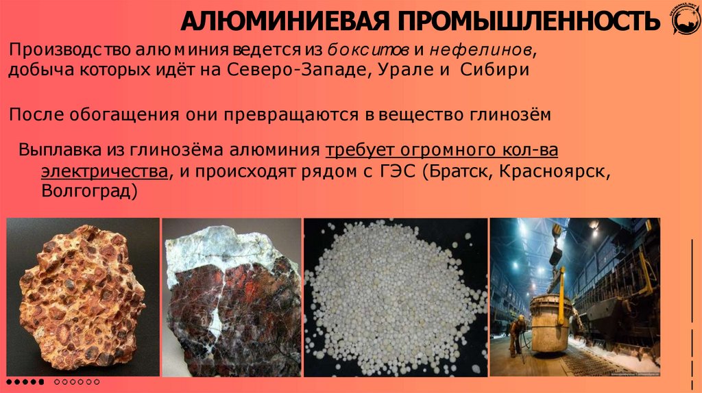 АЛЮМИНИЕВАЯ ПРОМЫШЛЕННОСТЬПроизводс тво алю миния ведется из б о кс итов и нефелинов,