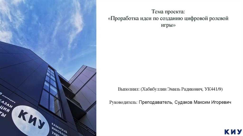 Выполнил: (Хабибуллин Эмиль Радикович, УК441/9)Руководитель: Преподаватель, Судаков Максим Игоревич