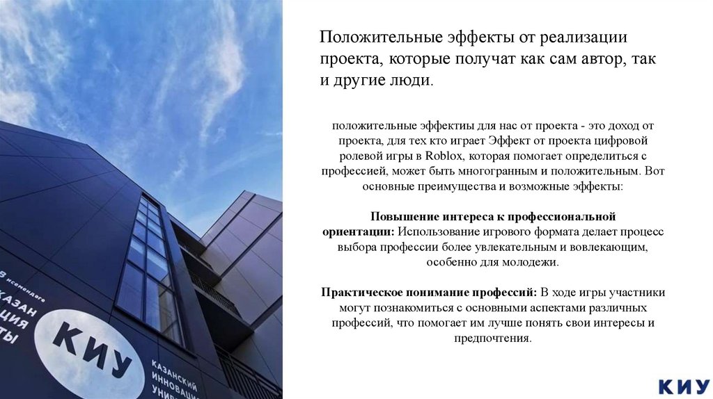 Положительные эффекты от реализациипроекта, которые получат как сам автор, так