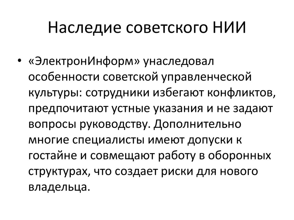 Наследие советского НИИ• «ЭлектронИнформ» унаследовал