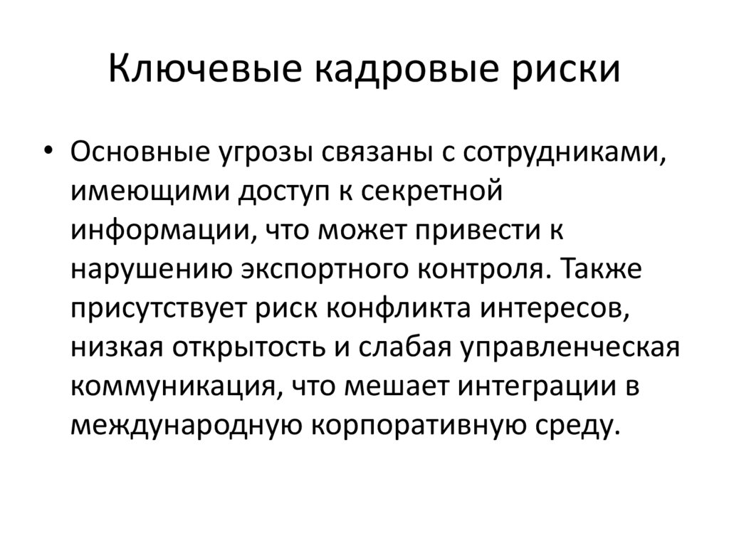 Ключевые кадровые риски• Основные угрозы связаны с сотрудниками,