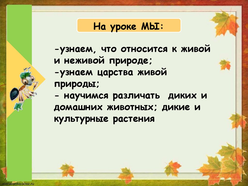 На уроке МЫ:-узнаем, что относится к живой