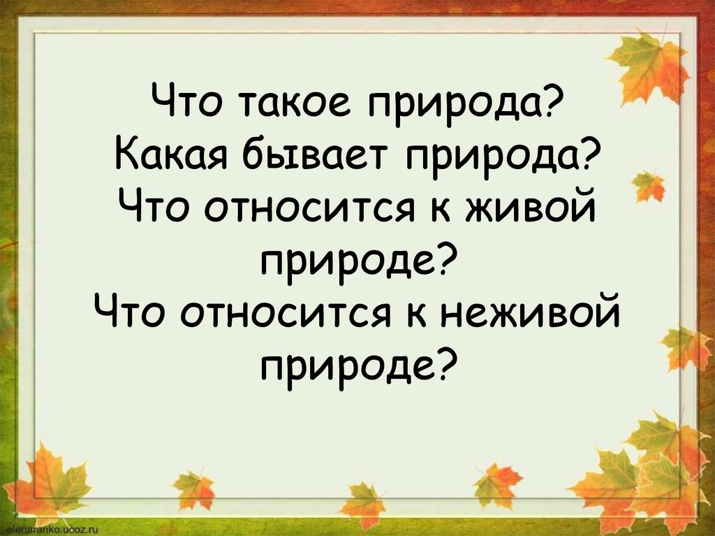 34. Что такое природа? Какая бывает природа? Что относится к живой природе? Что относится к неживой природе?