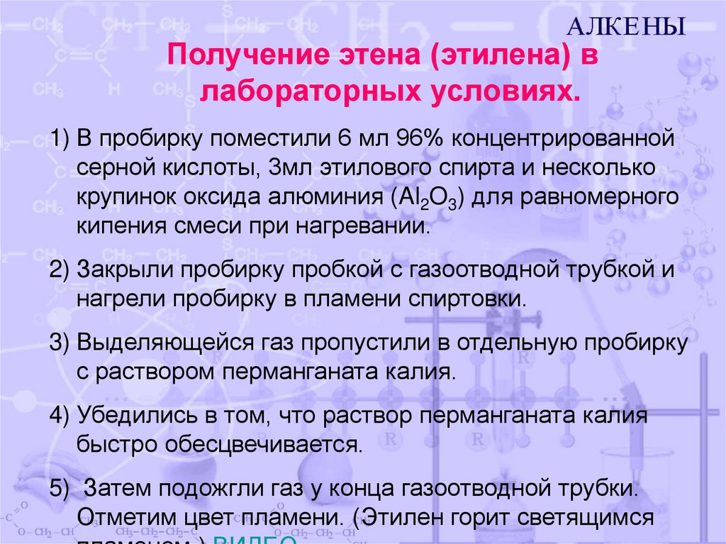 Получение этена (этилена) влабораторных условиях.
