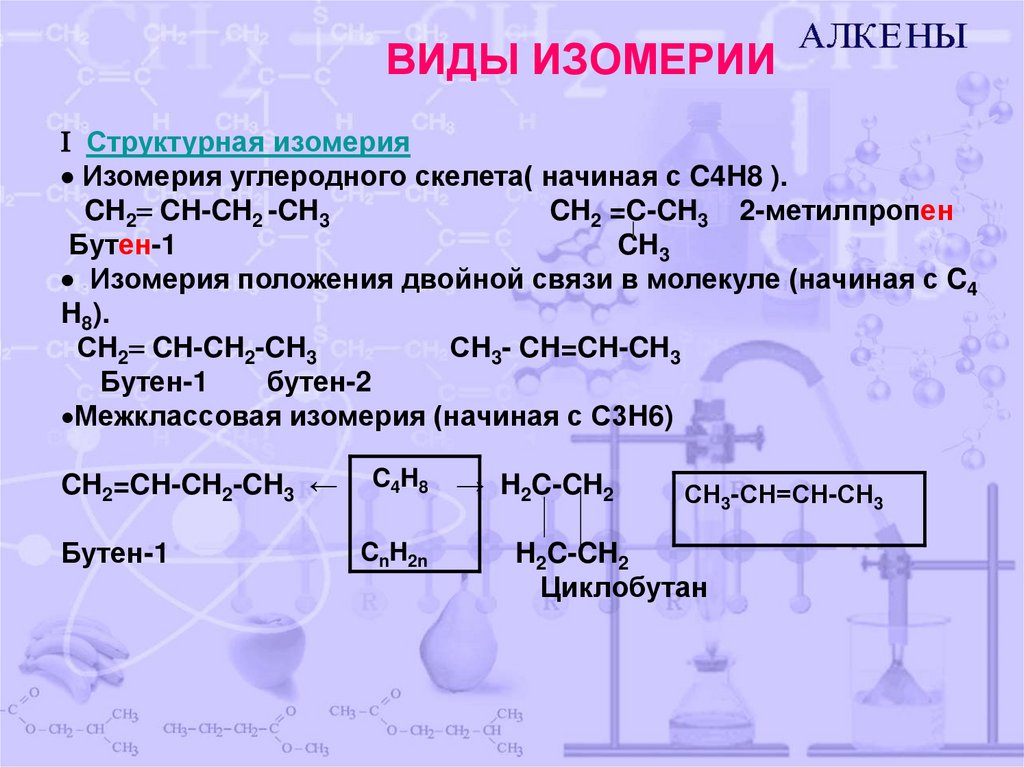 Изомерия углеродного скелета( начиная с C4H8 ).