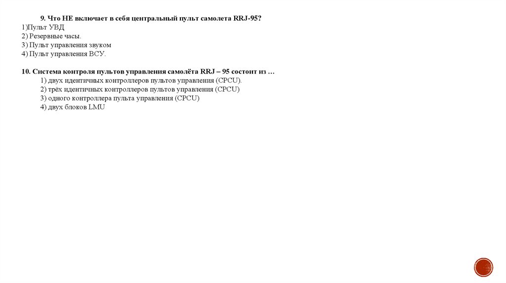9. Что НЕ включает в себя центральный пульт самолета RRJ-95?1)Пульт УВД