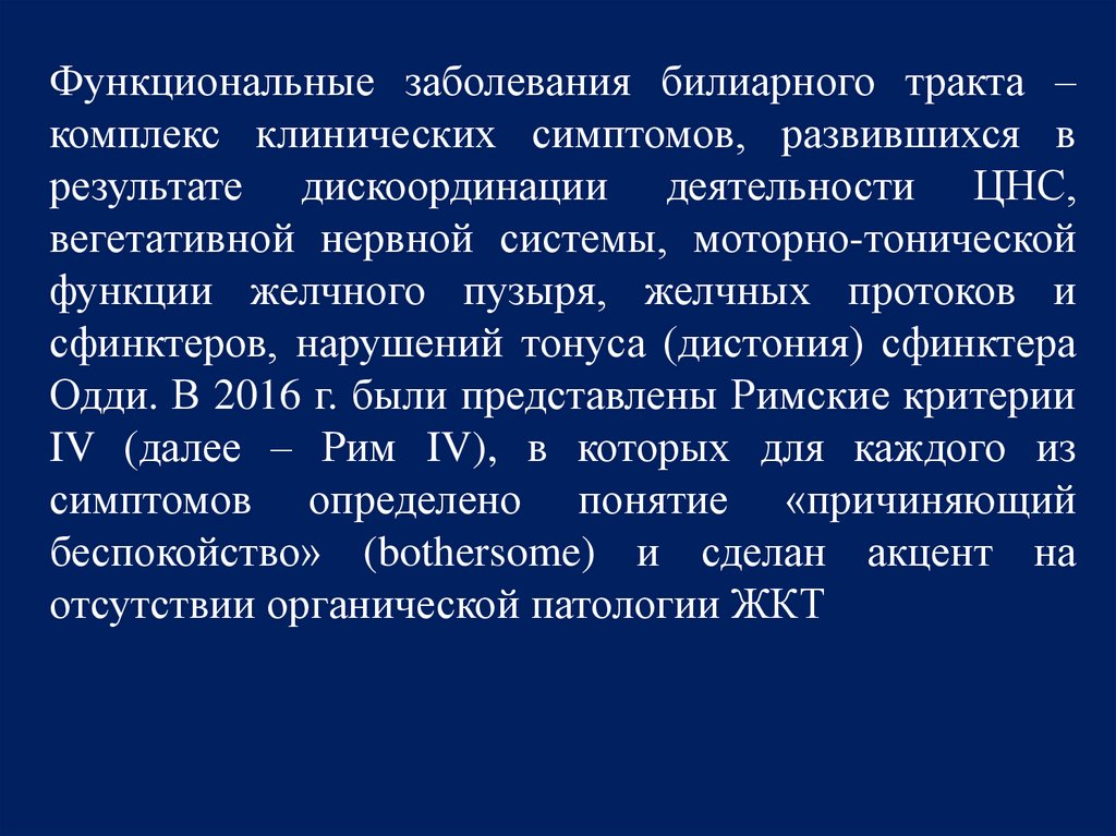 Функциональные заболевания билиарного тракта –комплекс клинических симптомов, развившихся в