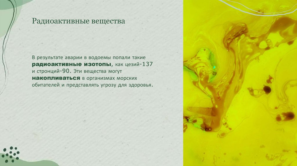 Радиоактивные веществаВ результате аварии в водоемы попали такие