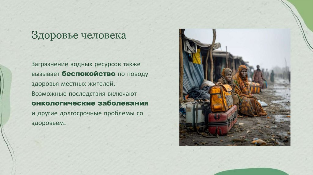 Здоровье человекаЗагрязнение водных ресурсов также